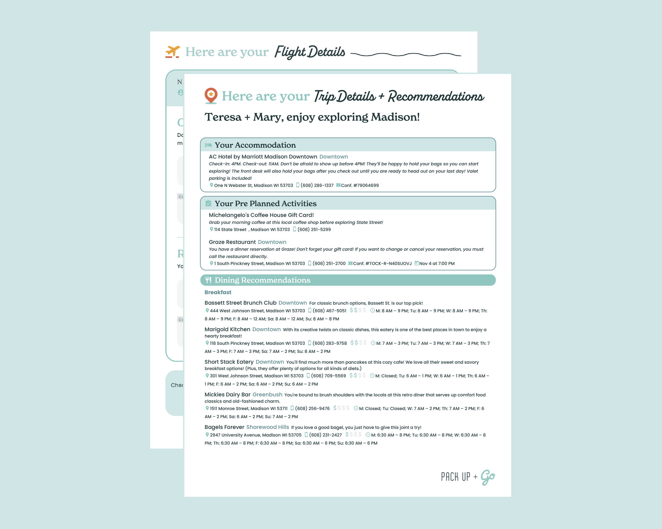 The biggest excitement builder for Pack Up + Go is their surprise envelope, which contains everything they need to get started on their mystery vacation. The most thrilling part? Within the envelope is a destination reveal, which travelers eagerly anticipate looking at the day they depart. I redesigned and reformatted all of these print assets for consistency.