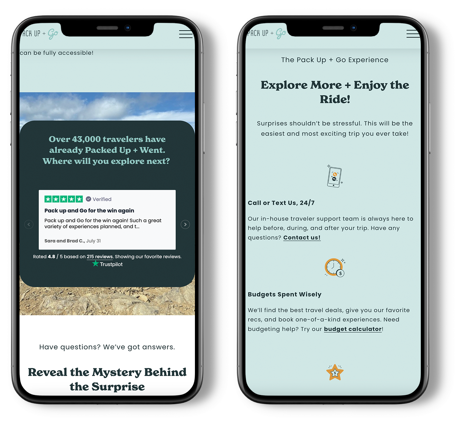 From 2022-2024 I was the sole graphic designer for Pack Up + Go, the leading surprise travel brand in the US. As their first and only full-time designer, I was tasked with streamlining the brand and redesigning all of the assets it came with. This included many print assets, merchandise, social media content, email automations, the website, and everything in between. It was a huge lift, and I was eager for the challenge.